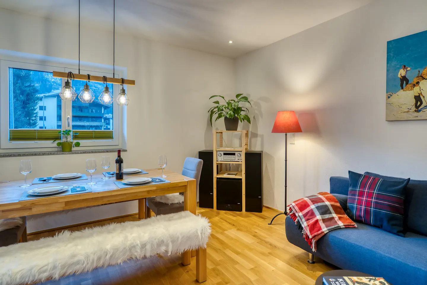 Im Essbereich für 4 Personen genießen Sie den einmaligen Ausblick auf das Zentrum und die beiden bekannten Kirchtürme. Beim Entspannen auf der Couch blicken Sie auf den Hahnenkamm und die weltberühmte Streifabfahrt.