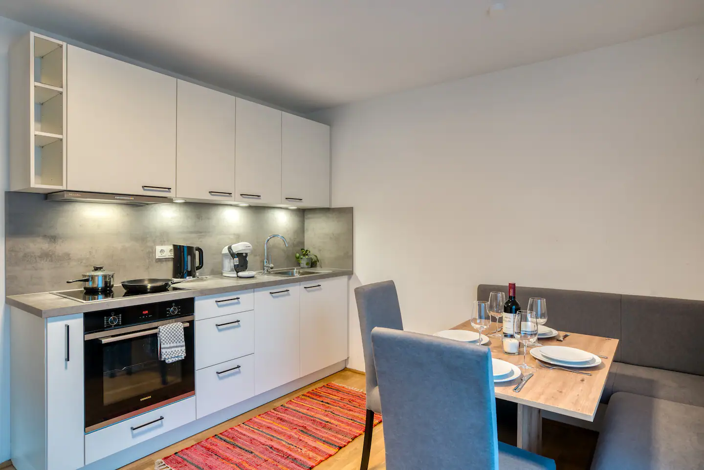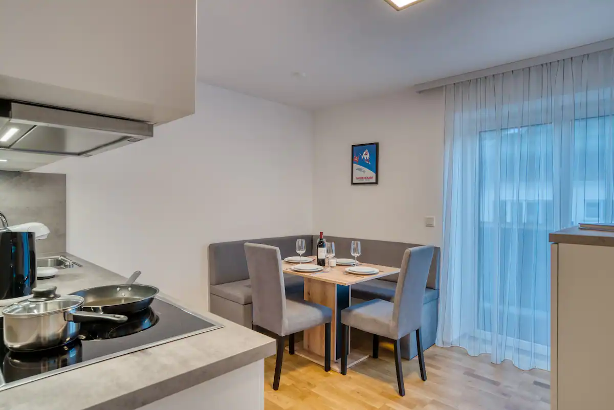 In the cozy dining area in the kitchen you can look at the mountain weather on TV while having breakfast so you can plan your day ideally.