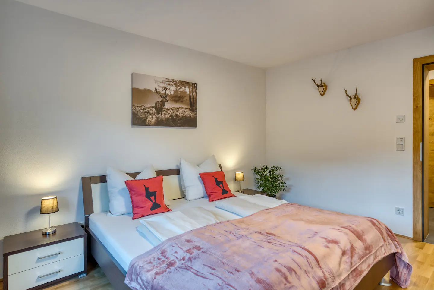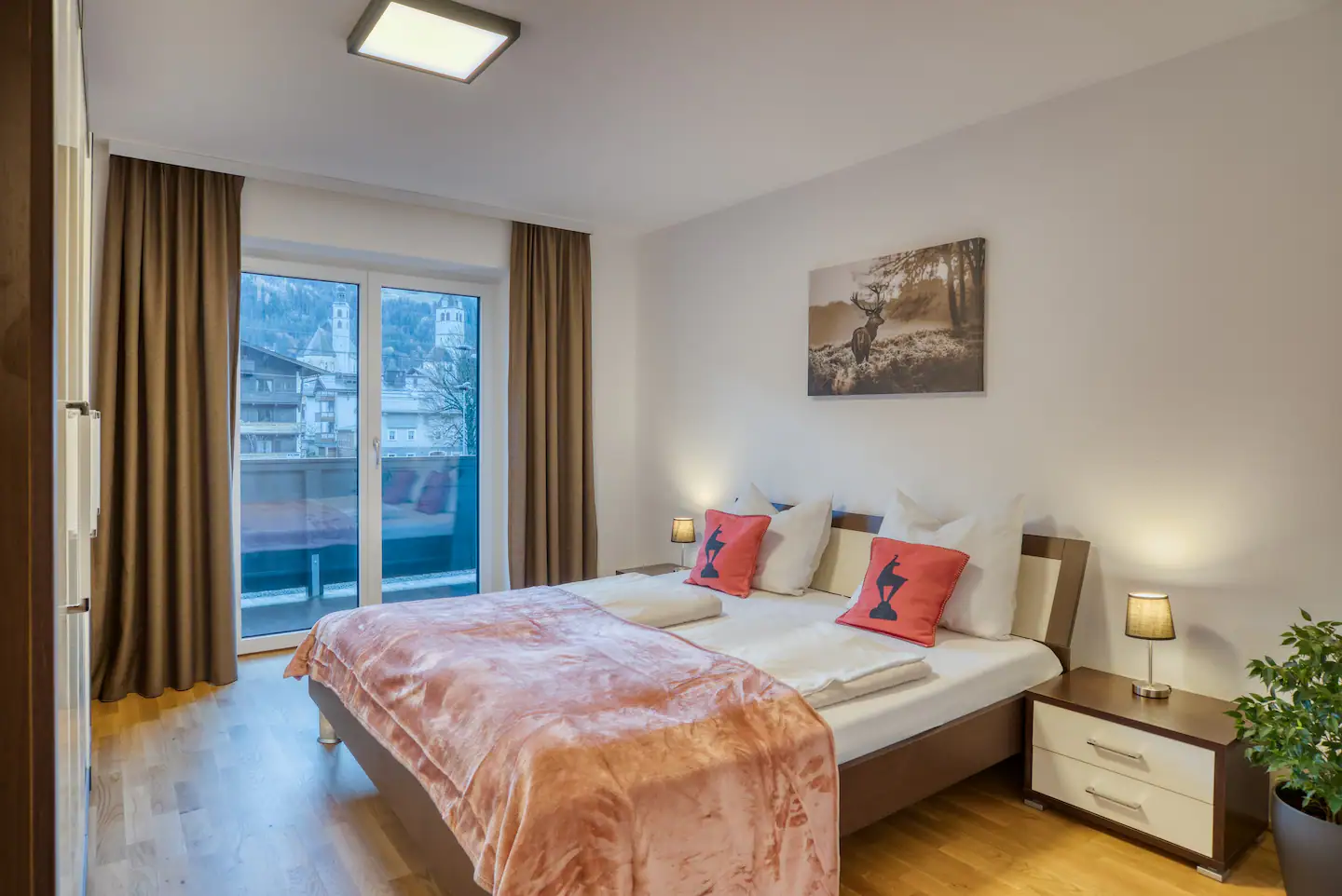 From the bedroom “forest” you have a perfect view of the surrounding mountain landscape through the two large windows. In the bedroom “deer” you can see the well-known cityscape of Kitzbühel. Both bedrooms and the kitchen have access to the large balcony, where there is seating available for you.